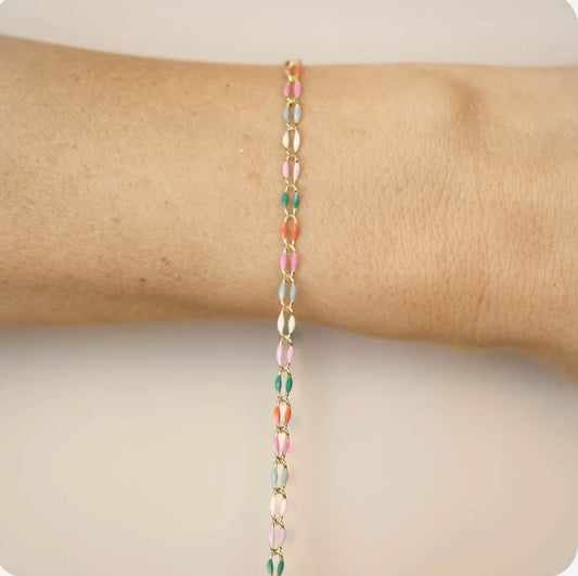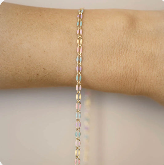 Gold Enamel Chain in Pink